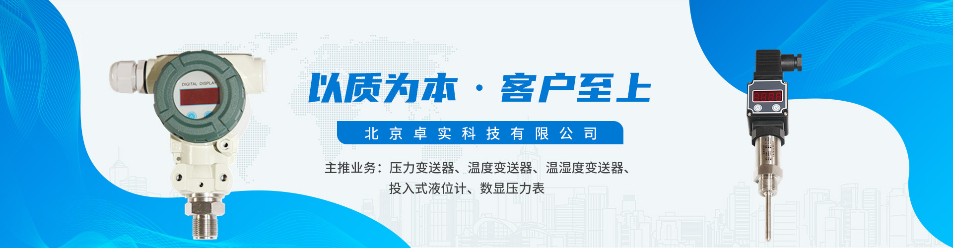 北京卓实科技有限公司以压力仪表、温度仪表、液位仪表、温湿度仪表为主导产品,公司多年来坚持产品创新,不断优化产品和服务品质。主营压力变送器、温度变送器、温湿度变送器、差压变送器、液位变送器等。产品广泛应用于供水供热、石油、化工、食品、医药、机械制造等行业。公司秉承“以诚为本,以质为本”的经营理念,坚持“客户至上”的原则为广大客户提供优质的服务。